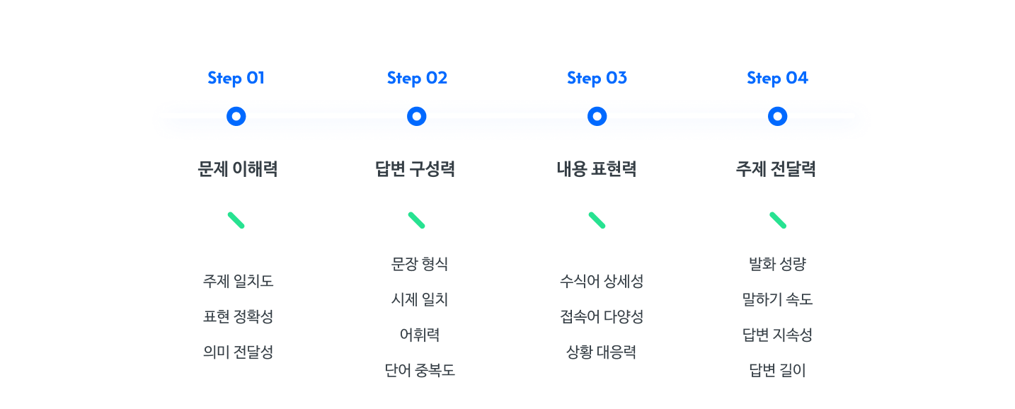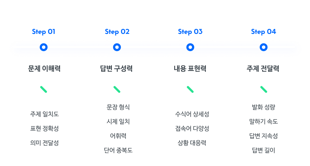 - 답변의 성량, 속도와 함께 얼마나 끊김 없이 길게 말할 수 있는지 평가합니다.