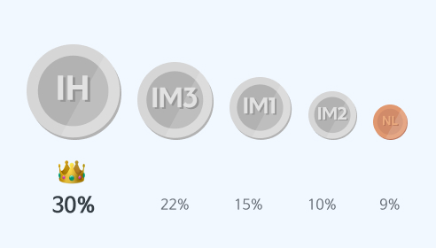 - 무려 반 이상의 오픽업 사용자가 IH, IM3 등급에 분포하고 있어요. 이후로는 NL ~ IM2 까지의 사용자가 많은 분포도를 보이고 있습니다. 해당 순서 다음으로는 AL 8%, IL 3%, NM 2%, NH 1%로 등급이 분포되어 있습니다.